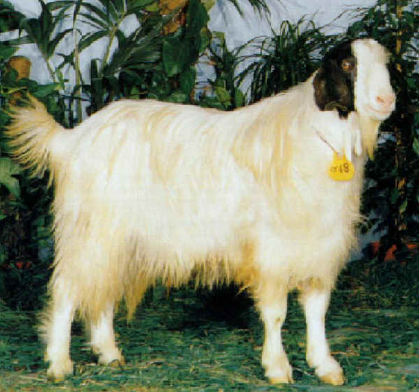 Testa: relativamente piccola e leggera; piuttosto tozza nel maschio; profilo fronto-nasale rettilineo; presenza di barba nel maschio; caratteristiche orecchie lunghe e larghe, pendenti sia nel maschio che nella femmina con notevole tendenza ad avere le estremità rivolte all’esterno; ciuffo di peli arruffati, non sempre presenti, nella zona frontale solo nel maschio; le corna sono assenti o presenti sia nel maschio che nella femmina.