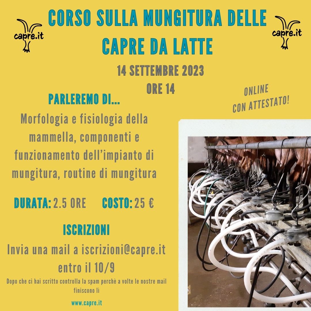 14 SETTEMBRE: CORSO SULLA MUNGITURA DELLE CAPRE DA LATTE