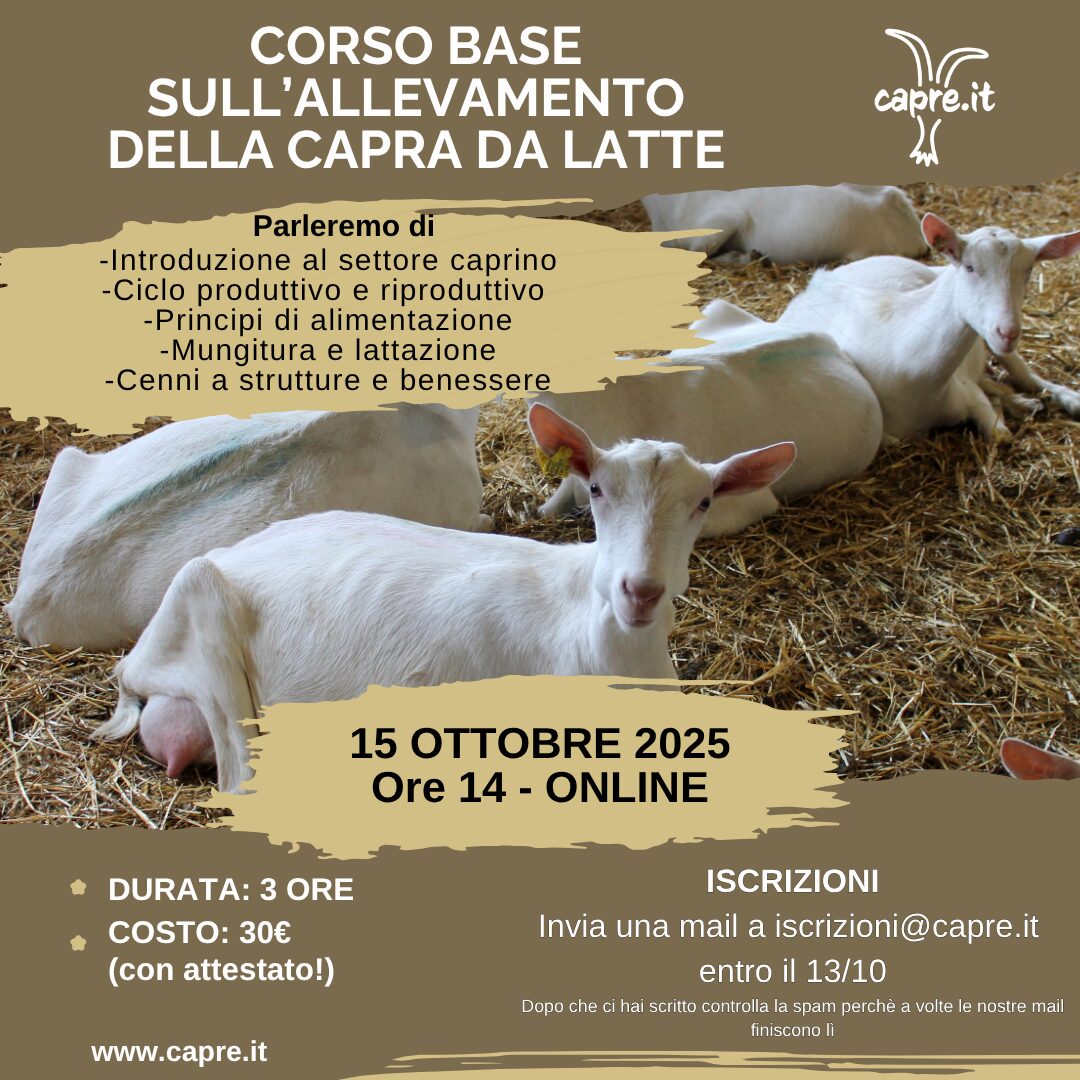 Vuoi saperne di più sull’allevamento della capra da latte?? Questo è il corso ideale!!