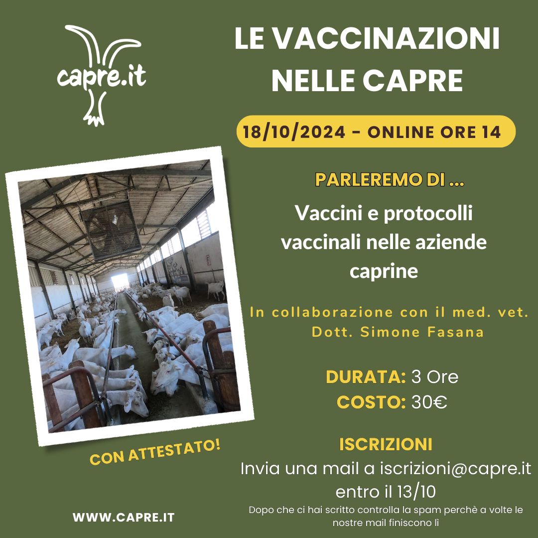 Il 18 ottobre, in collaborazione con il Med. Vet. Dott. Simone Fasana proponiamo online, il CORSO SULLE VACCINAZIONE NELLE CAPRE.