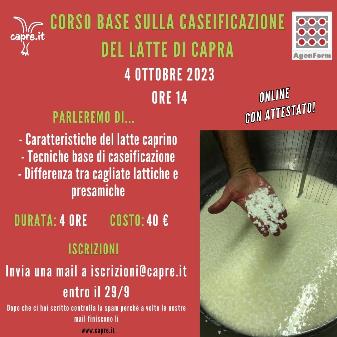 4 OTTOBRE: CORSO BASE SULLA CASEIFICAZIONE DEL LATTE DI CAPRA