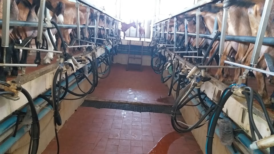 Mattia: “In totale abbiamo 12 capannoni, uno occupato dalle mie capre. Forse una particolarità interessante è che pecore e capre condividono la stessa sala di mungitura, una 48 poste con 24 gruppi. Pecore e capre non possono essere munte con gli stessi parametri ma grazie ad un sistema di variazione dei rapporti di pulsazione, semplicemente girando una levetta, possiamo variare il funzionamento dell’impianto adattandolo anche alle mie capre. Questa è una fortuna perché mediamente mungo 55 animali e con una sala di mungitura così grande, ci impiego pochissimo!”