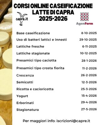 30€Ecco l’elenco dei corsi si caseificazione del latte di capra per la stagione 2025-2026