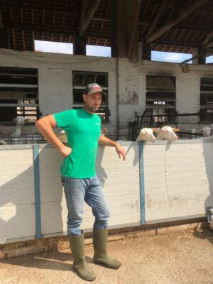 Angelo “Io sono perito chimico e per anni ho lavorato in un’azienda della zona, ma sono nato e cresciuto in una famiglia di allevatori. Quando mio papà è andato in pensione il numero di vacche è diminuito molto e le strutture si sono svuotate. Tutte le volte che tornavo a casa mi mancava qualcosa, così nel 2017 ho deciso di acquistare le prime 30 capre di razza Saanen, dopo 6 mesi ne ho comprate altre 20 e l’anno successivo 20 ancora. Eccomi qui oggi allevatore a tempo pieno con circa 380 capi totali! Questa è la mia vita e, come tutta la mia famiglia, sono molto contento della scelta intrapresa”.