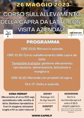 Il 26 maggio presso l’Azienda Agricola Isacchi di Bulciago (LC) si terrà il corso sull’allevamento della capra da latte con successiva visita aziendale.