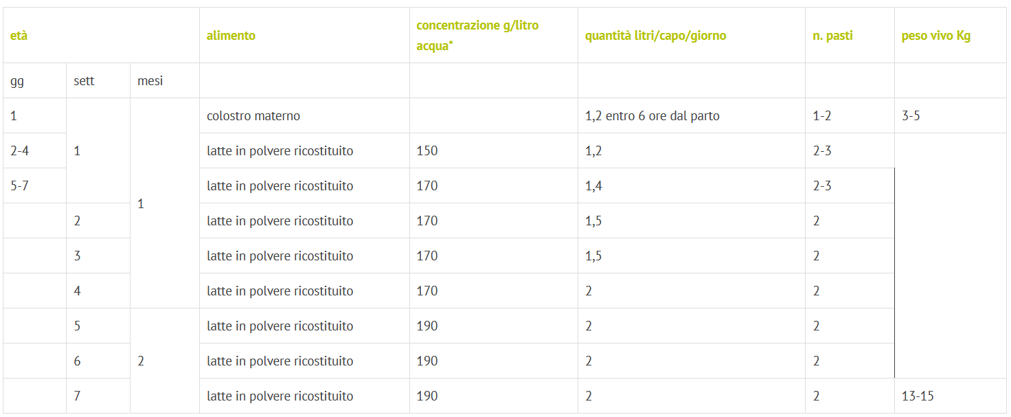 Di seguito riportiamo un protocollo di alimentazione per capretti macellati a 50 giorni di età .