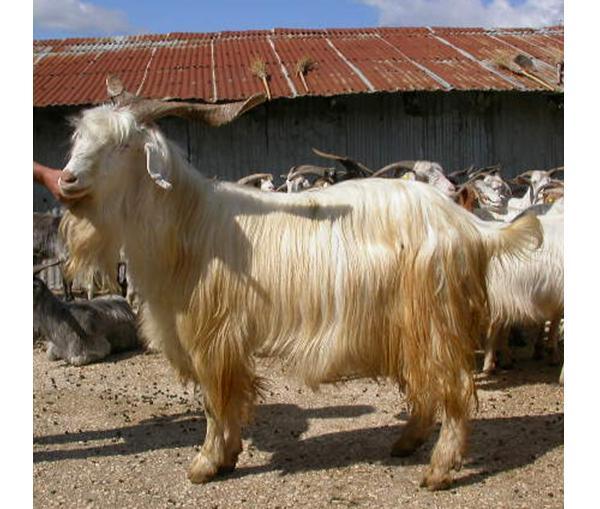 Testa: grande ed espressiva, a volte con profilo leggermente camuso. Guance piatte, mai allargate nella zona mandibolare. È coperta da corta peluria e può essere presente un pronunciato ciuffetto frontale. Sempre presente la barbetta, che si presenta molto pronunciata nei maschi. Sia nelle femmine che nei maschi sono presenti grandi corna divergenti e relativamente appiattite lateralmente. Le orecchie sono grandi, larghe, pendenti o semipendenti. Sono ammesse orecchie più strette e portate orizzontalmente.