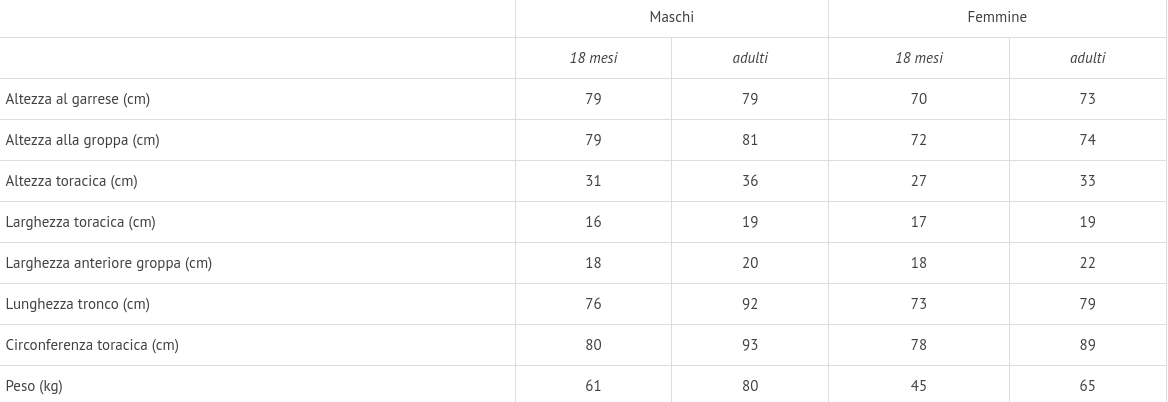 Tronco: torace e addome ben sviluppati, regione dorso lombare rettilinea ed orizzontale, groppa larga e lievemente spiovente.