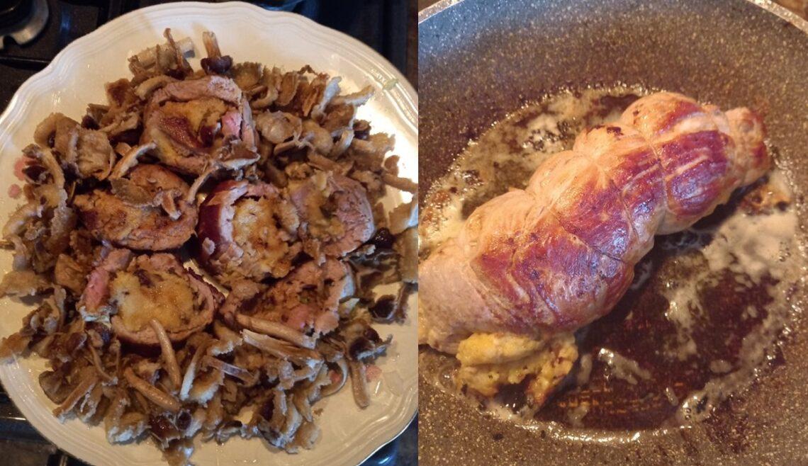 Lasciar intiepidire e tagliare a fette. Come contorno posizionare dei funghi infarinati precedentemente fritti.