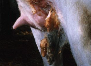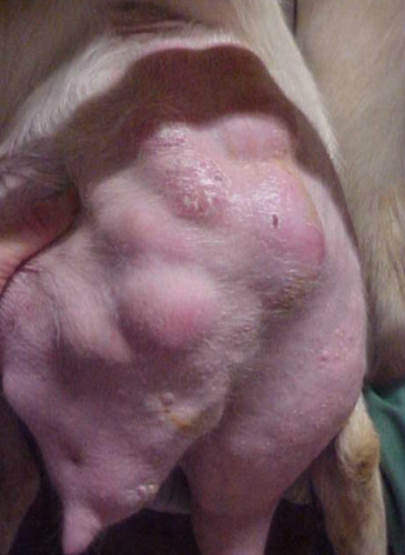 Esiste poi un gruppo di batteri: Corynebacterium ovis, Staphilococco Aureus subsp. Anaerobius, (Trupararella – A. Pyogenes) responsabili della mastite a grappolo, come si può vedere in foto.