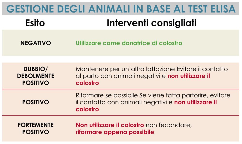 - Non utilizzare colostro di altre specie (bovino) di allevamenti positivi o di stato sanitario sconosciuto