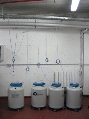 La presenza di due siti e quindi la suddivisione del materiale genetico di ogni singolo riproduttore in due differenti bidoni dell’azoto, permette di non perdere alcun tipo di materiale genetico in caso calamità, danni o carenza di azoto liquido nel bidone.