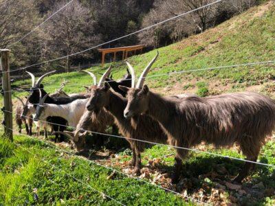 Gli animali, all’interno di recinti elettrificati, vengono sempre lasciati al pascolo durante le belle giornate mentre sono tenuti in stalla in caso di precipitazioni (pioggia o neve) e di notte. All’interno di ogni zona recintata troviamo gli abbeveratoi, le tettoie per il riparo degli animali e un portafieno per lasciare sempre a disposizione delle capre fieno e fibra lunga.