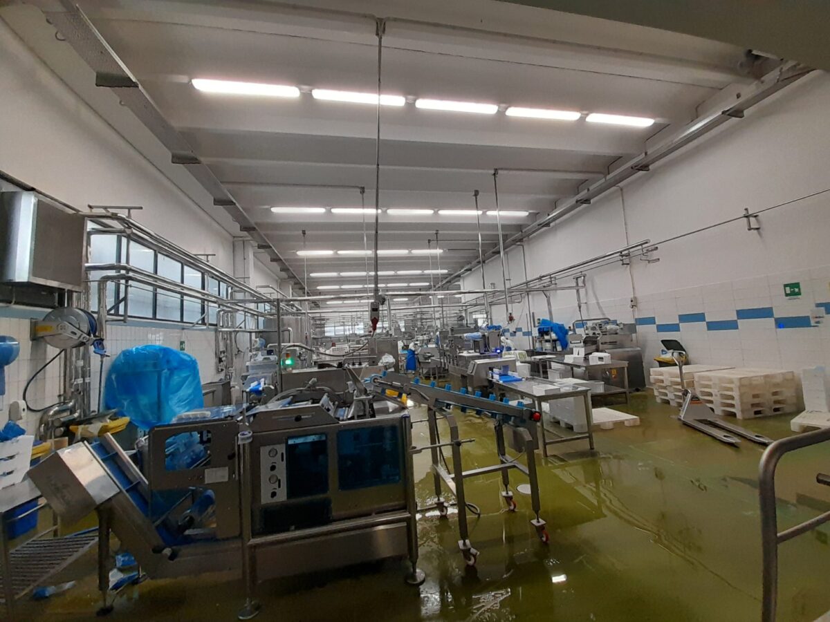 Internamente si trova la zona delle polivalenti, la zona destinata alla filatura e formatura che viene fatta manualmente, affiancata da vasche di acqua gelida e per finire la zona di confezionamento.
