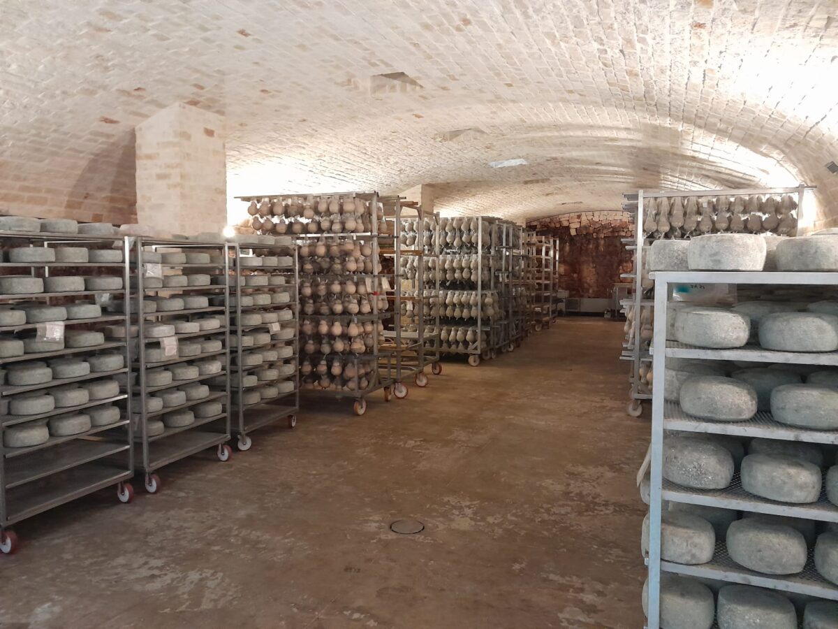 La grotta di stagionatura, situata nell’interrato del caseificio è una vera chicca con le pareti in roccia e ricca della pregiata pietra di Trani, permette di stagionare non solo i formaggi di capra ma anche il caciocavallo che viene tenuto in questo ambiente dai 6 ai 12 mesi.