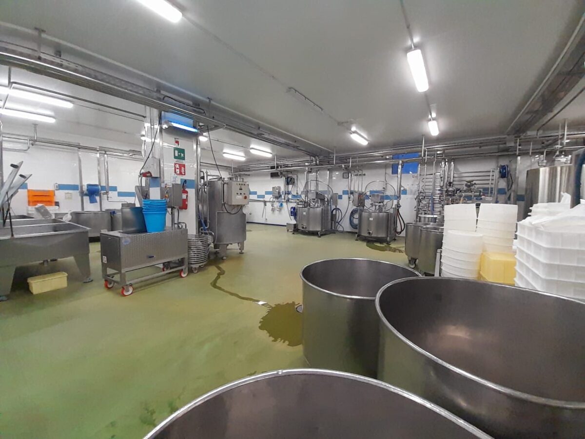 Il caseificio industriale presenza un’area esterna con i silos per la conservazione del latte che arriva giornalmente dai 42 allevatori conferitori, seguita da una zona per il controllo qualità.